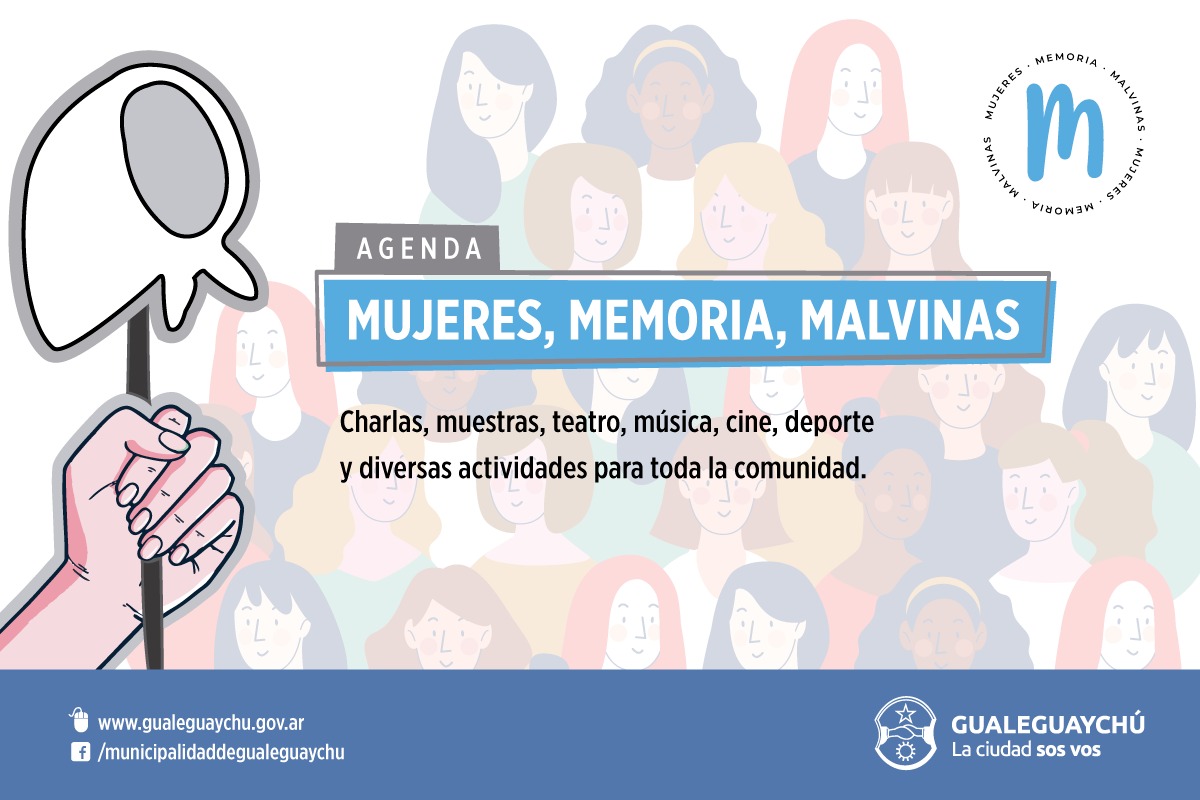 En este sentido, la Municipalidad de Gualeguaychú junto a instituciones educativas y organizaciones sociales llevarán adelante la agenda "Mujeres, Memoria, Malvinas"*, con charlas, muestras, teatro, música, cine, deporte y diversas actividades para toda la comunidad.