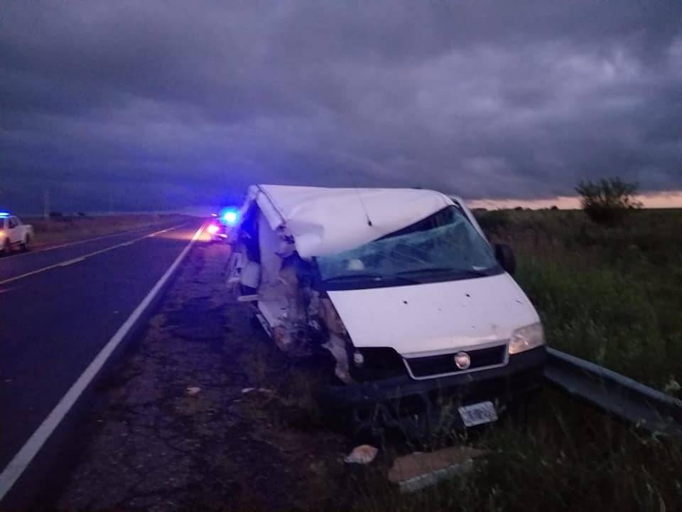 En horas de la madrugada, aproximadamente a las 5:30 horas, de este jueves un utilitario, Ducato, dominio MLE 278, que se desplazaba por Ruta 20 de Urdinarrain a Basavilbaso con productos de panadería sufrió, por causas que se tratan de establecer, un grave siniestro de tránsito que por milagro no fue trágico.