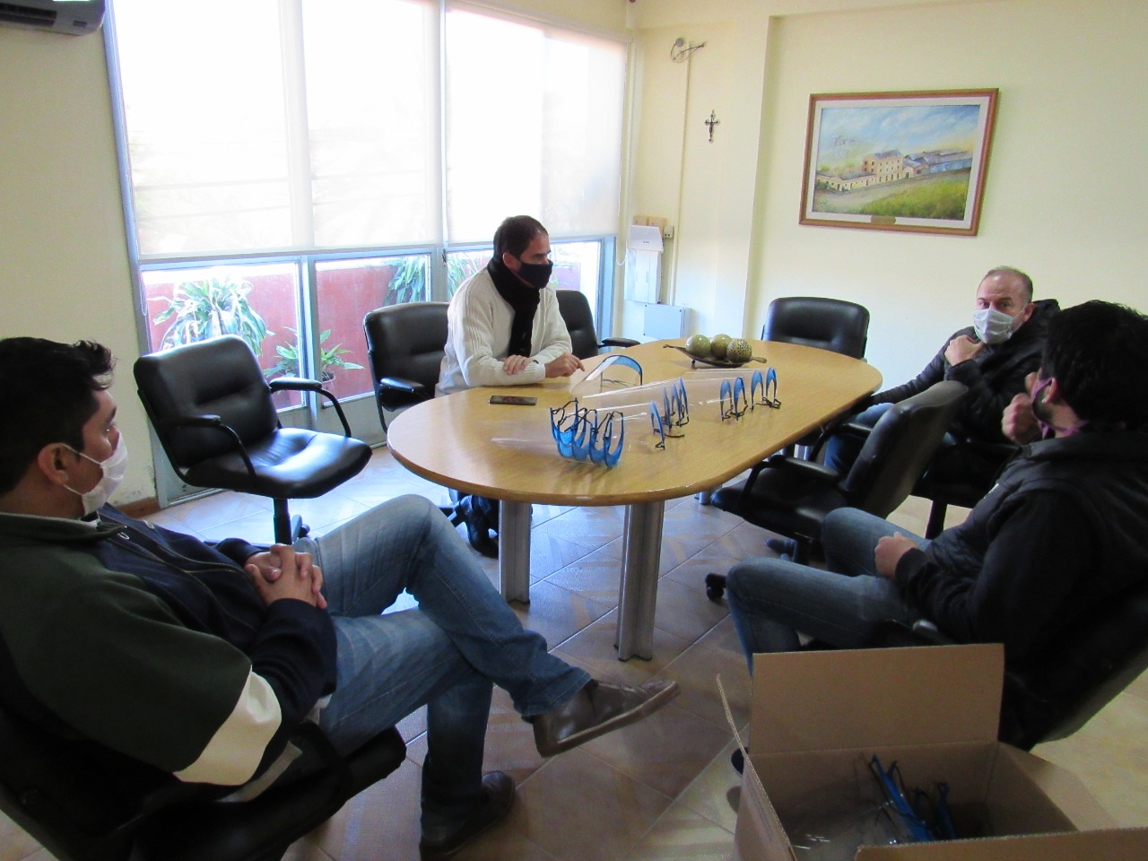 La Municipalidad de Larroque y el Comité de Emergencia recibieron la donación de mascarillas de protección facial, a través de la U.O.Y.E.P. (Unión de Obreros y Empleados Plásticos), en la persona de Gastón Samaniego y Mauro Adriel, quienes fueron recibidos por el intendente Leonardo Hassell y Norberto Marchesini, de Contaduría municipal.