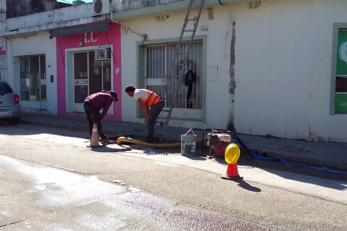 El lunes por la mañana, operarios de la empresa Hornus comenzaron un trabajo de purga en el nuevo caño de 500 milímetros instalado en calle Lavalle para poder conectarlo finalmente a la red de agua potable.