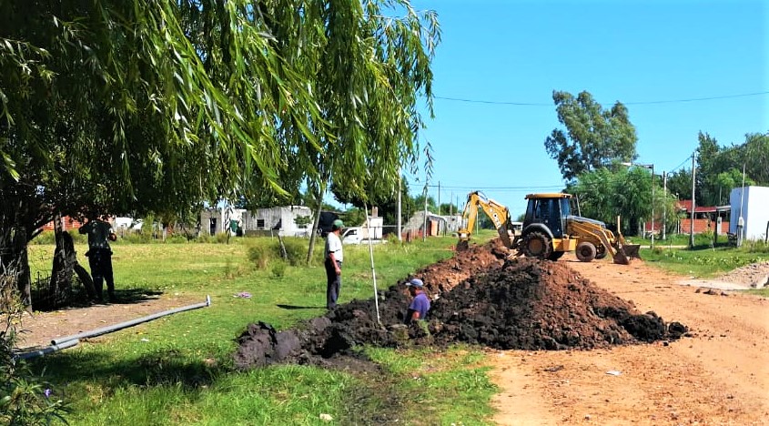 Personal de Obras Sanitarias está trabajando en la ampliación de la red de agua sobre calle Falucho, entre San Juan y Catamarca.