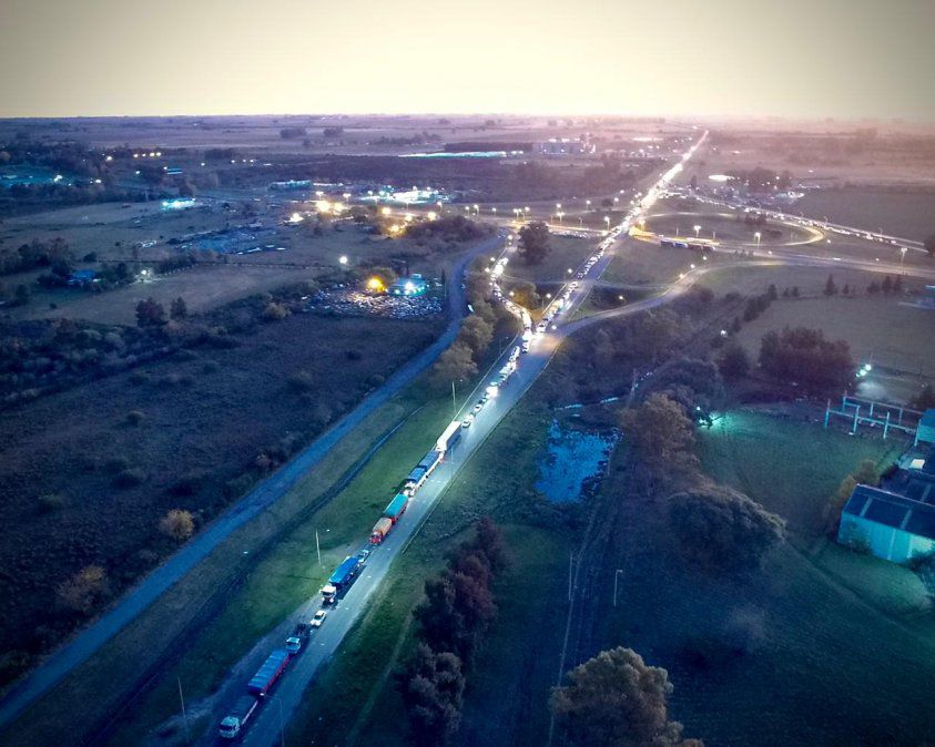 El sol que había hecho de la tarde del miércoles una otoñalmente cálida hace rato que se escondió, y la noche no facilitó la espera: la temperatura comenzó a bajar rápidamente, y desde los camiones comenzaron a ponerse prendas de abrigo, una encima de la otra. “Pobre la gente que jamás imaginó que esto podía llegar a pasar y no tiene consigo un abrigo”, dijo un camionero que había bajado a ver si avanzaba la fila más adelante. La noche, irónicamente, dejó ver con mayor claridad la cantidad de autos esperando por entrar a Gualeguaychú: la línea punteada que conformaban las luces de los vehículos se perdía a lo lejos, sin tener un final aparente.