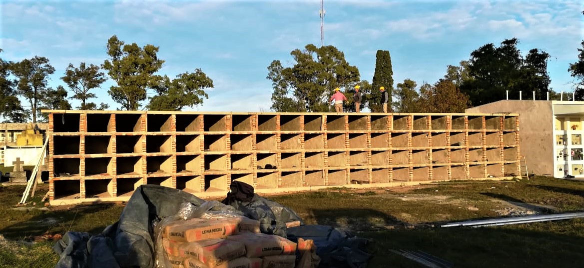 “En consonancia con la flexibilización de la cuarentena y la autorización por el DNU para comenzar o dar continuidad con algunos trabajos en la obra pública, retomamos la construcción de 80 nuevos nichos, en el cual estamos realizando el hormigonado de la 4ta fila, lo que nos permitirá luego, levantar la mampostería para dar correcta pendiente antes de colocar el techo, ampliando considerablemente la cantidad disponible existente.”, contó el Ingeniero Gastón Elena, a cargo de la Secretaría de Obras y Servicios Públicos del Municipio.