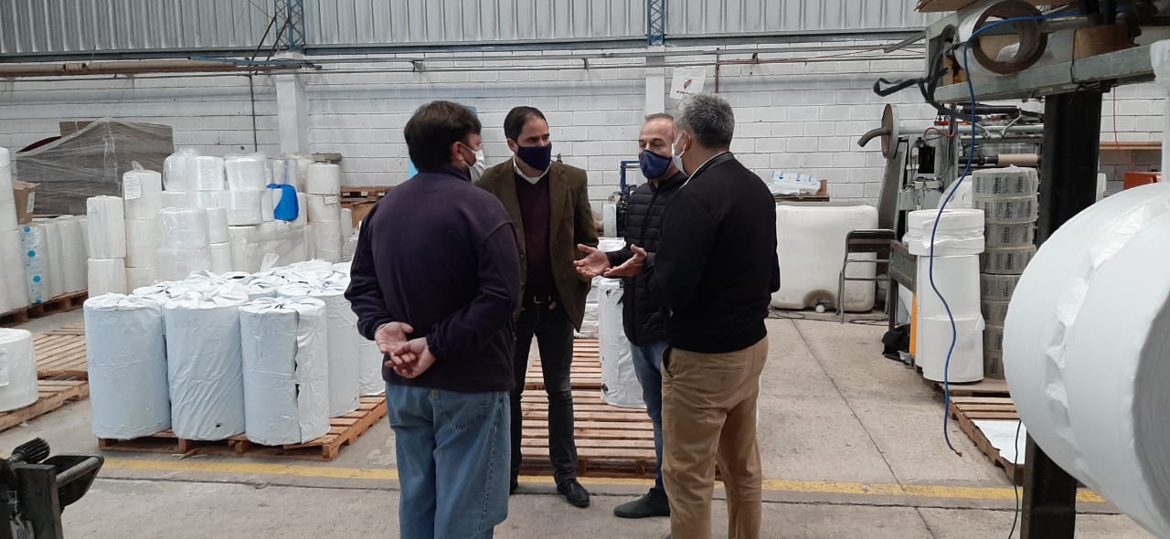 El intendente de Larroque, Leonardo Hassell, visitó, junto al secretario de Salud y Desarrollo Ambiental, Diego Ortolano, la empresa local Leo Film, donde fueron recibidos por sus titulares, Norberto Marchesini y Leonardo Toloza.